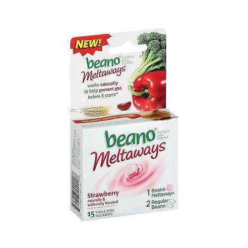 Beano strawberry meltaways contain a natural enzyme that breaks down the complex carbohydrates found in many foods, making them easier to digest so they don't cause gas. beano meltaways work naturally to help prevent gas from beans, vegetables, whole grains and other healthy foods.