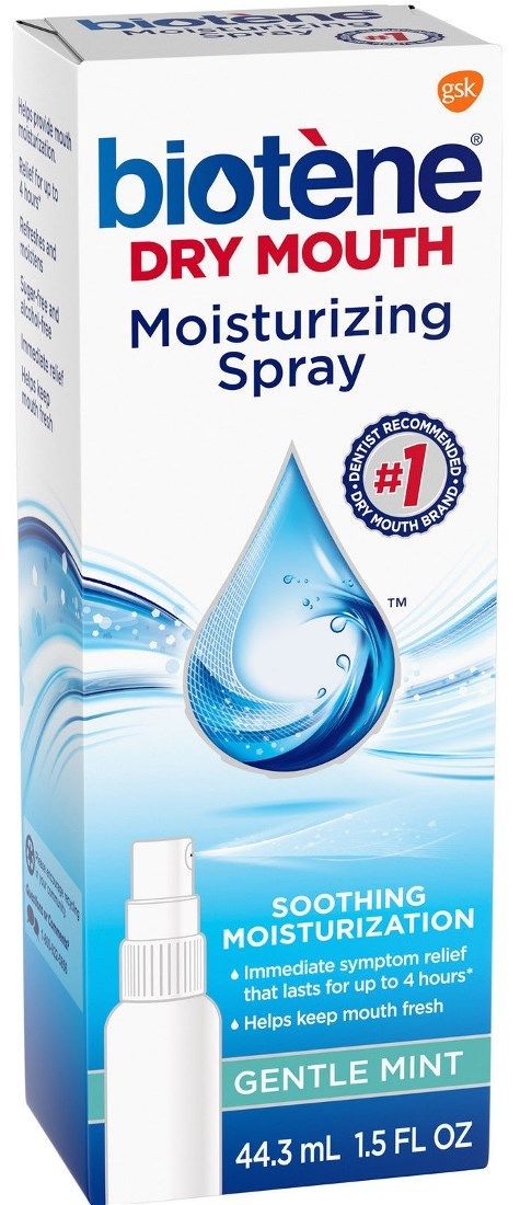 Use Biotène Moisturizing Spray whenever your mouth is feeling dry. It provides a quick, on-the-go solution that gives you instant Dry Mouth symptom relief. Biotène Moisturizing Spray is portable, easy to apply and discreet to use. Biotène® Moisturizing Spray is alcohol-free and helps freshen your breath.