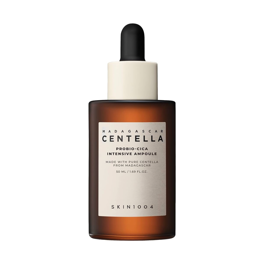 Skin1004 Madagascar Centella Probio-Cica Intensive Ampoule fills the skin with moisture to keep it hydrated without harming the skin and provides a smooth and silky finish without any greasiness. It contains Centella Asiatica extract, an ingredient that effectively soothes the skin, and vegan ProBio-Cica (Centella fermented with TECA), providing care for weak and sensitive skin barrier. It repairs damaged skin barrier to prevent the evaporation of moisture and provides care for dry sensitive skin. This ampoule improves the skin smoothness on the forehead, chin, nose, and cheeks as well as the skin around the eyebrows, eyes, and mouth as validated by professional skin clinicians. It does not contain any artificial fragrances or colors and is safe to use on all skin types including sensitive skin.