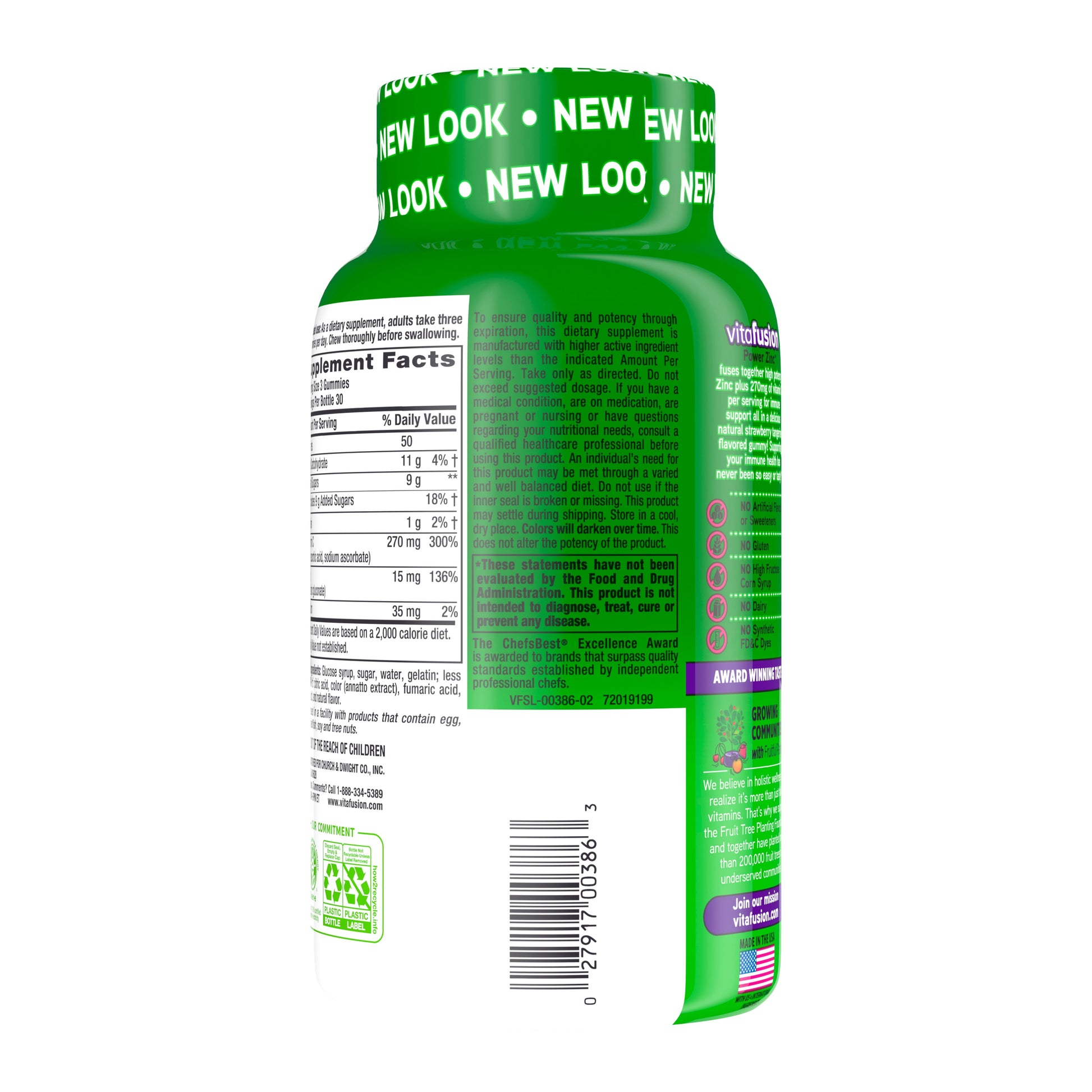 New from America's #1 Gummy Vitamin brand, vitafusion Power Zinc gummy vitamins! Each serving contains 15mg of high potency Zinc for immune support* plus 270mg Vitamin C in a delicious natural strawberry tangerine flavor. With no artificial flavors, no gluten or dairy, no high-fructose corn syrup, and no synthetic (FD&C) dyes, for a vitamin experience you can feel good about!