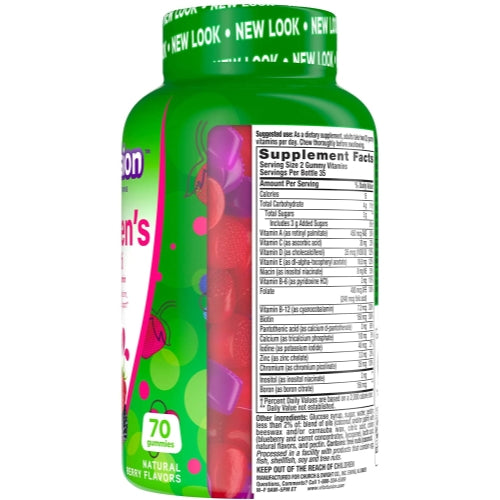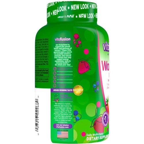 Made with delicious natural colors and flavors, easy-to-take Vitafusion Women's daily multivitamins are the nutritious alternative to hard-to-swallow pills. Easy to chew flavorful gummies provide an enjoyable way to get the multivitamins and minerals women may need every day. Just 2 gummies per day help support healthy metabolism and women's bone health. Vitafusion Women's Daily Multivitamins contain 100 mg of collagen. Made with natural colors and flavors, they contain no gluten (wheat), milk, peanuts, tree nuts or soy. Vitafusion Women's gummy vitamins are made in the USA and lab tested to ensure quality and potency. (This statement has not been evaluated by the Food and Drug Administration. The product is not intended to diagnose, treat, cure or prevent any disease.)
